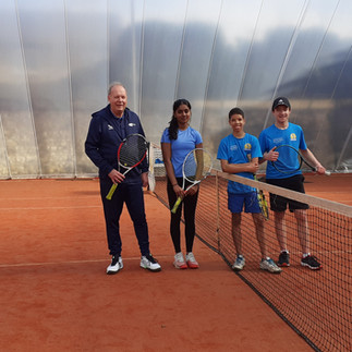 David is no stranger to Bucks having played a lot of tennis in the County over the years so it was good to welcome him back and for him to meet up with old friends. We met at the Bucks Indoor Centre (one of the few remaining county centres now over 25 years old and going strong) in High Wycombe at 8am and greeted him with coffee and pastries. Then it was onto court joining in a red squad before spending some time with members of the Management Committee. Six venues were visited of varying different sizes and it was great to see all the effort the volunteers had gone to, showcasing their clubs and activities. As an example, Aylesbury organised a very well attended Open Day. David spent time on court with the players but the tour nearly lost both of us at our second stop, Lacey Green and Loosley Row (great name and award winners), where we joined in a Cardio session! I have to say David lasted longer than me as I had to dip out, being the advanced party for the next visit! We used the opportunity for David to present awards (eg to Emma Strong at Princes Risborough who was the best player by performance in the Aylesbury & District League) as well as meeting parents at Stony Stratford and volunteers from Bucks Tennis. The weather was kind until Wolverton where snow stopped play. An exhausting but brilliant day and a big thank you to David for taking the time to visit the County.
